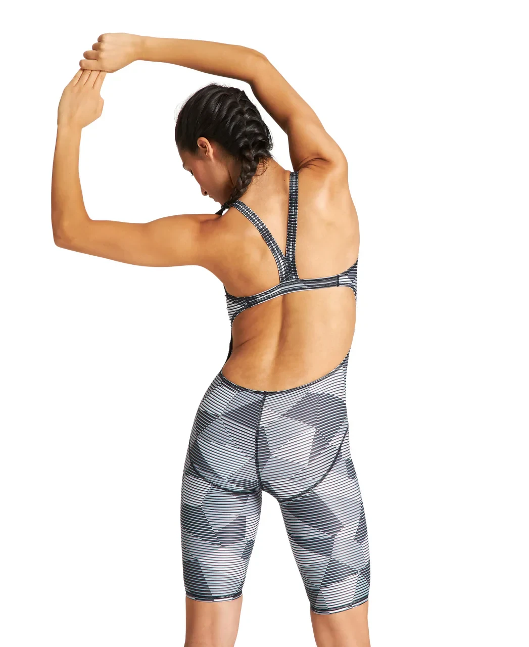 The long cut arena Swimsuit Striped Geo Full Body with dynamic all-over print is designed for frequent fitness swimmers and competitive swimmers. The 100% chlorine resistant MaxLife fabric with integrated UV protection UPF50+ is extremely quick-drying and long-lasting. The open back provides maximum freedom of movement, excellent feel of water and reduced drag. Wide straps guarantee perfect fit, even during start and turn.